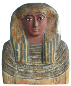 * Grieks-Romeins: een beeldje van Osiris met Isis en Horus, de kop van een koning, een marmeren kop van een sarcofaag, een ibis, een rechthoekig schrijftablet en een Fajoemportret (foto).